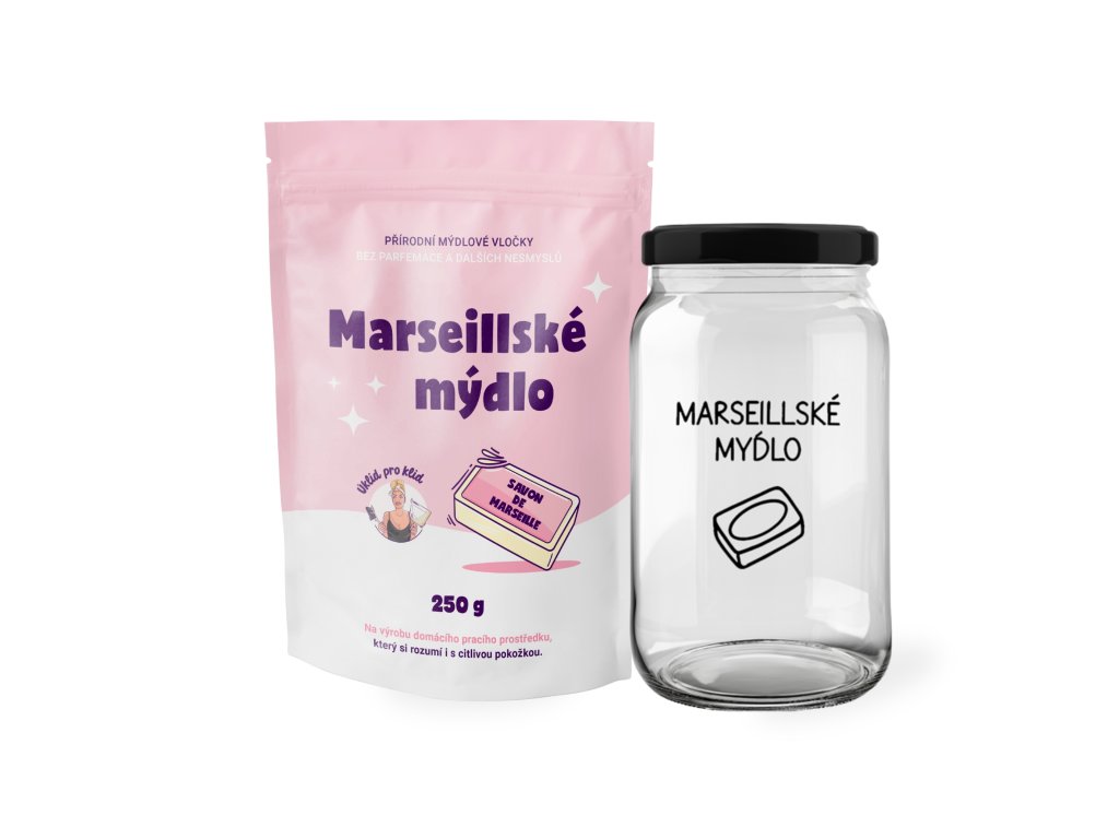 Marseillské mydlo a sklenená nádoba 0,9 l - sada