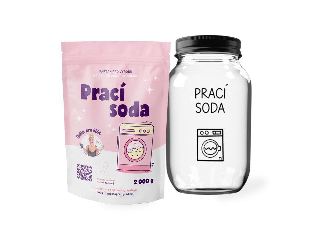 Ušetri si čas s hľadaním dvoch produktov a kôp je rovno v jednej sade. Sada obsahuje praciu sódu 2 kg a pohár s nápisom Prací soda s objemom 3,68 l.