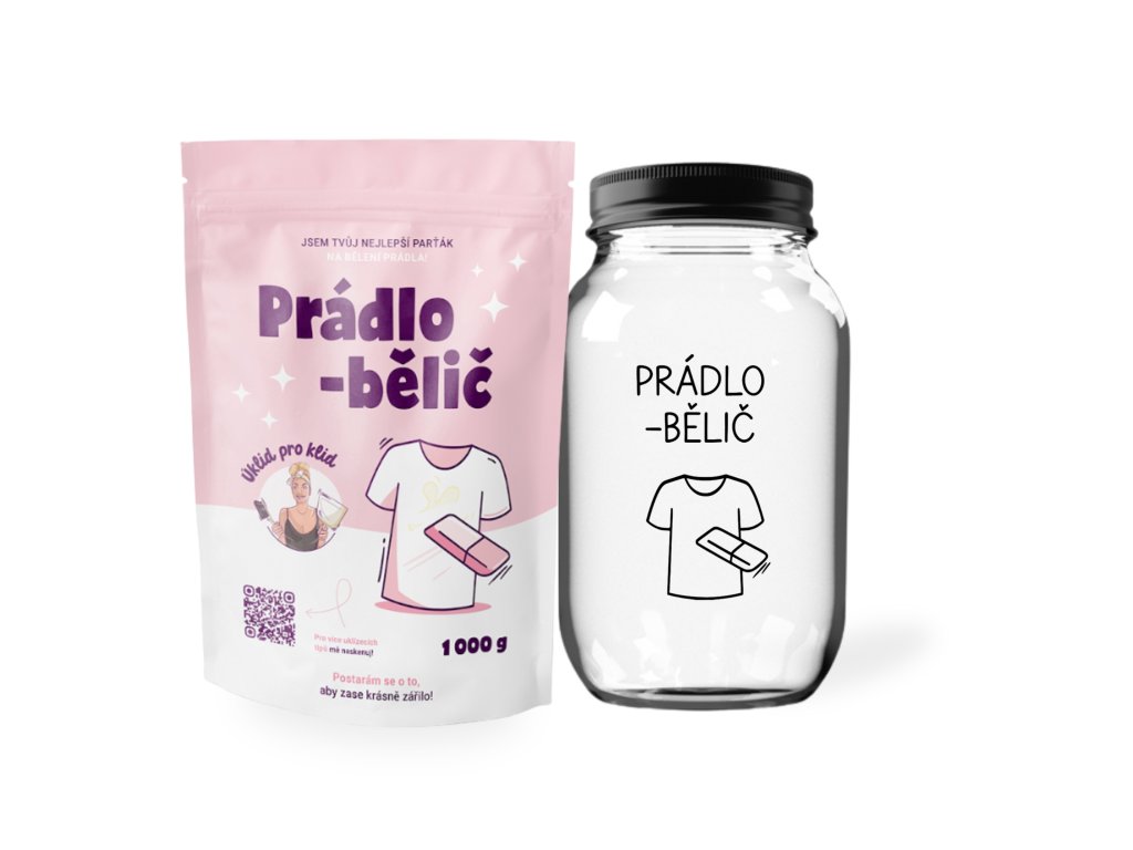 Ušetri si čas s hľadaním dvoch produktov a kôp je rovno v jednej sade. Sada obsahuje prádlobělič 1 kg a sklenená nádoba s nápisom prádlobělič.