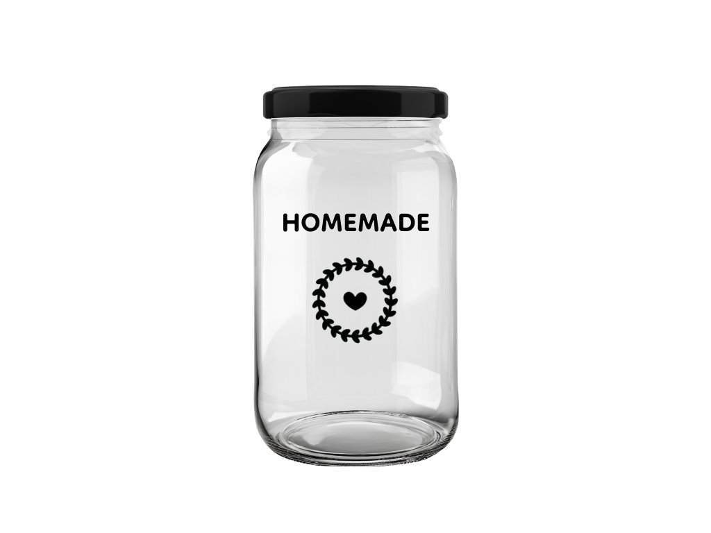 Sklenená nádoba s nápisom "HOMEMADE" s objemom 0,9 litra - pre bezpečné skladovanie a krásne zladenú kuchyňu alebo kúpeľňu.
