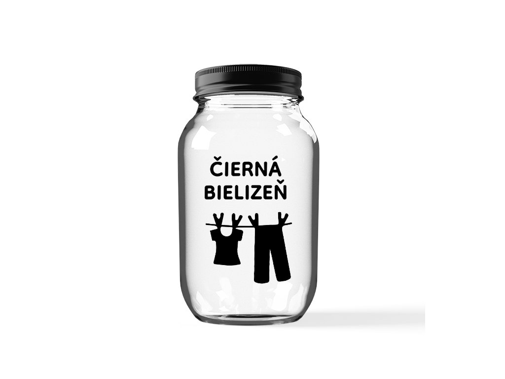 Sklenená nádoba s nápisom "čierne prádlo" s objemom 3,68 litra - na bezpečné uloženie a krásne zladenú kúpeľňu.